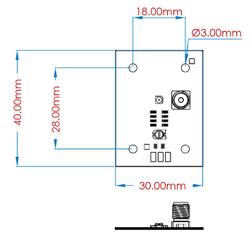 Frequency 13.56MHz Impedance 50-Ohm Dimensions 30 x 40mm Reading range bis 60mm Temperature/Humidity -24 +75 C RH 95% NC -